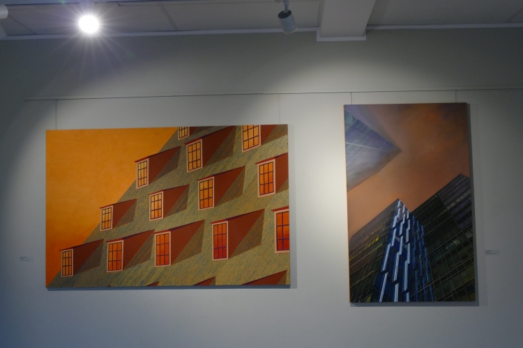 Wystawa „Refleksy” to spotkanie dwóch odrębnych, a jednocześnie przenikających się światów malarskich – prac Katarzyny Dyjewskiej i Noemi Staniszewskiej. To zestawienie otwiera przestrzeń do refleksji nad współczesnością, architekturą, przestrzenią miejską i kondycją człowieka w jej obrębie.