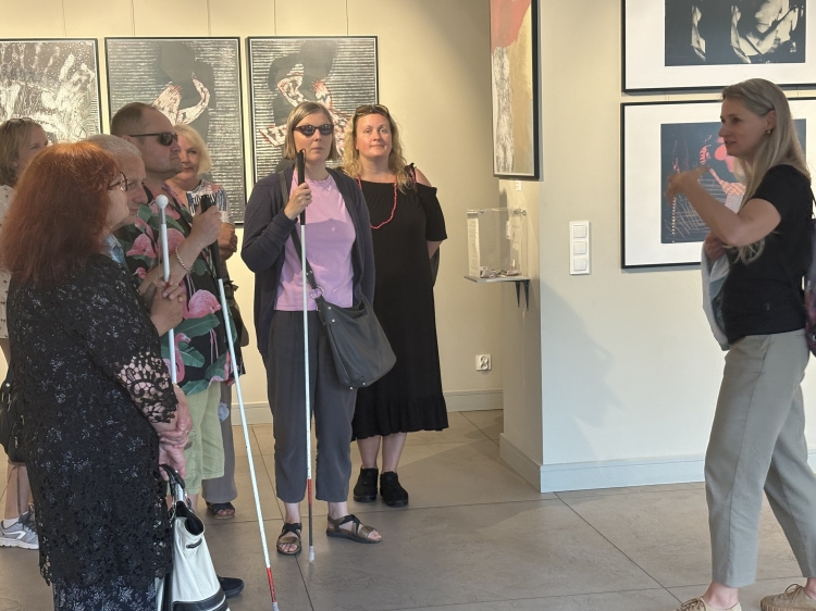 Podczas oprowadzania kuratorskiego po wystawie, kuratorka Anna Cirocka przedstawi koncepcję artystyczną i interpretację dzieł. Dzięki jej przygotowaniu osoby niewidzące i niedowidzące będą mogły w pełni uczestniczyć w spotkaniu.